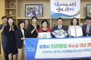 【뉴스라이트 = 이양지 기자】 광명시가 경기도가 선정하는 인권 행정추진 우수 기관으로 3년 연속 선정되며 인권 선도 도시로 확고히 자리매김했다. 시는 지난 9월 30일 경기도청 다산홀에서 열린 ‘2025년 경기인권포럼’에서 경기도 인권 행정추진 우수 자치단체 경기도지사 표창을 받았다. 경기도는 31개 시군을 대상으로 인권행정 제도와 정책 추진 성과를 종합 평가해 5개 우수 자치단체를 선정했으며, 광명시는 평가 제도가 도입된 2023년부터 올해까지 매년 수상하는 성과를 거뒀다. 이번 수상은 ▲인권행정 제도 구축(인권조례제정, 인권위원회 구성 및 운영, 인권교육 실시 등), ▲인권정책 수립(인권기본계획 수립 및 연도별 시행계획 수립, 인권실태조사 및 인권영향평가, 인권문화행사 등) ▲지역사회 인권증진 활동 ▲시민 인권 보장과 존중 문화 확산 등 전반적 성과를 전문가들로부터 인정받은 결과다. 광명시는 2012년 지방자치단체 최초로 ‘광명시민인권센터’를 개소하고, ‘인권보장 및 증진 5개년 기본계획’ 수립하는 등 인권 친화적 행정의 기틀을 마련해 왔다. 특히 인권기본계획에 재개발·재건축이 많은