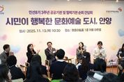 【뉴스라이트 = 이양지 기자】 안양시는 13일 오전 10시 30분 평촌아트홀 1층 카페 아트림에서 ‘시민이 행복한 문화예술 도시, 안양’을 주제로 (재)안양문화예술재단과 민선 8기 3주년 공공·협력기관 순회 간담회를 개최했다. 이번 간담회는 민선8기 3주년을 맞아 안양시 문화예술 정책의 주요 성과를 공유하고, 현장 예술인과 시민의 의견을 직접 청취하기 위해 마련됐다. 행사에는 안양 지역 예술인과 문화단체 관계자, 시민 등 120여 명이 참석해 안양의 문화예술 비전과 발전 방향에 대해 활발한 소통의 시간을 가졌다. 간담회에서는 ▲시민이 주인공이 되는 ‘안양춤축제’ ▲생활문화로 피어나는 ‘마을축제 지원사업’ ▲지역·청년예술인 창작활동 지원 ▲안양박물관과 공공예술프로젝트(APAP) 등 시민이 함께 만들어가는 다양한 문화예술 사례가 소개됐다. 안양춤축제는 안양만의 축제가 아니라 관광형 축제로 거듭나고 있다. 지난 9월 3일간 열린 축제에는 총 14만2,000여명이 참여했는데, 이 중 40%가 타 시도민으로 추산된다. 춤축제 기간 열린 유스클럽챔피언십의 한 고등학생 참가자는 “대회 분위기가 생각보다 훨씬 뜨거웠고 행복했