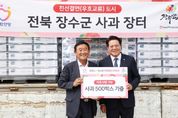 【뉴스라이트 = 이양지 기자】 안양시는 전북 장수군으로부터 지역 특산물인 사과 500박스(1,500만원 상당)를 기부받아 관내 사회복지시설에 전달했다고 24일 밝혔다. 이번 기부는 양 도시의 친선 결연 29주년을 기념해 청정 자연 속에서 재배한 우수 농산물을 널리 알리고, 도농 교류 협력을 강화하기 위해 마련됐다. 23일 오후 1시40분 안양시청 본관 앞에서 열린 전달식에는 최대호 안양시장과 최연수 장수사과원예농협협동조합장, 조합 이사 및 관계 공무원 등이 참석했다. 23~24일 안양시청 청사 내에서는 조합 주관으로 장수 사과 시식 및 홍보, 판매 행사가 열렸다. 시는 기부받은 사과를 사회복지시설 26곳에 전달해 추석을 맞아 어려운 이웃들과 풍성한 수확의 기쁨을 함께 나눴다. 시는 장수군과 친선 결연의 의미를 돈독히 하며 지역 농특산물 홍보에도 적극 협력할 계획이다. 최대호 안양시장은 “장수군의 따뜻한 마음과 정성이 담긴 기부에 깊이 감사드린다”면서 “앞으로도 도농 상생의 가치 실현을 위해 다양한 교류 협력을 이어 가겠다”고 말했다.