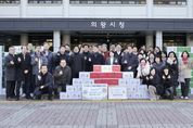 【뉴스라이트 = 이양지 기자】 의왕시가 새중앙교회로부터 크리스마스를 맞아 어려운 이웃을 돕기 위한 생필품 꾸러미 ‘사랑의 천사박스’ 1,004상자(약 4,000만 원 상당)를 기부받았다고 밝혔다. 시청 본관 앞 광장에서 열린 전달식에는 새중앙교회 황덕영 담임목사와 나문성·박재관 목사, 이칠수·신종범·김경화 장로 등 새중앙교회 관계자들이 참석해 따뜻한 나눔의 뜻을 함께했다. 새중앙교회 황덕영 담임목사는“크리스마스를 맞아 소외된 이웃들에게 사랑을 전하고자 하는 성도들의 마음을 모아 사랑의 천사박스를 준비했다”며“이 작은 정성이 어려운 이웃들에게 위로가 되고, 따뜻한 겨울을 보내는 데 도움이 되기를 바란다”고 말했다. 방경미 복지문화국장은“해마다 변함없이 나눔을 실천해 주시는 새중앙교회와 성도 여러분께 깊이 감사드린다”며“시에서도 소외되는 이웃이 없도록 지역사회를 더욱 세심하게 살피고, 촘촘한 복지 지원에 최선을 다하겠다”고 밝혔다. 한편, 이날 기부된 생필품 꾸러미는 경기사회복지공동모금회에 기탁 처리된 후, 관내 저소득층 가구에 전달될 예정이다.