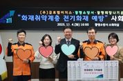 【뉴스라이트 = 이양지 기자】 광명소방서는 11월 4일 오후 4시, 광명소방서 2층 소회의실에서 (주)글로벌이지스, 광명희망나기운동본부와 함께 사회공헌 기탁식을 진행했다고 밝혔다. 이번 기탁식은 겨울철 소방안전대책의 일환으로 추진되는 ‘화재취약계층 전기화재 예방사업’의 일환으로 마련됐다. 이날 글로벌이지스는 전기 과부하로 인한 화재를 초기에 차단할 수 있는 자동소화멀티탭(엘리펀탭) 312개를 광명희망나기운동본부를 통해 기탁했으며, 기탁 물품은 겨울철 화재위험이 높은 취약계층 가정에 순차적으로 전달될 예정이다. 특히, 전기화재 예방 제품을 개발해 온 글로벌이지스와 지역 복지안전망 역할을 수행 중인 광명희망나기운동본부가 함께한 이번 협력은 민간기업과 공공기관이 힘을 모아 시민의 안전을 지키는 뜻깊은 사례로 평가된다. 행사에는 이종충 광명소방서장을 비롯해 윤혜빈 글로벌이지스 본부장, 이세열 광명희망나기운동본부 본부장 등 관계자 20여 명이 참석했고, 참석자들은 기탁식 이후 취약계층 주거환경 개선과 전기화재 예방을 위한 협력 방안을 논의했다. 이종충 서장은 “지역 기업과 복지협의회의 따뜻한 나눔이 시민의