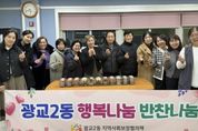 【뉴스라이트 = 조용은 기자】 광교2동 지역사회보장협의체는 2025년 6월부터 12월까지 관내 독거노인 복지사각지대 대상자를 위한 '행복나눔 반찬나눔'사업을 운영하여 성공적으로 마무리했다. '행복나눔 반찬나눔'은 관내 어려운 이웃에게 정기적으로 직접 반찬을 전달하며 따뜻한 정을 나누는 복지사업으로, 지역사회보장협의체 위원을 비롯한 자원봉사자들이 반찬을 구매하여 독거노인들에게 직접 방문하여 전달하는 방식으로 운영됐다. 이번 사업은 매월 1회 진행되며 기초생활수급자 독거노인 등을 우선 선정해서 7개월동안 진행했고, 반찬 전달 시 안부 확인을 병행하는 정서적 돌봄으로 이웃사랑 나눔을 실천했다. 광교2동 지역사회보장협의체 이종금 위원장은 “단순히 반찬을 나누는 것을 넘어서 지역주민에게 이웃사랑 나눔을 실천했고 대상자들도 만족하여 의미있는 사업이었다”고 밝혔다. 또한, 박남숙 광교2동장은 “올 한해 지역사회보장협의체 위원님들과 봉사자 분들의 따뜻한 손길로 민·관이 함께하는 나눔 복지를 실현했다”고 말했다. 광교2동은 자원봉사자 모집과 반찬 기부 참여 등을 지속적으로 홍보하며, 내년에도 다양한 대