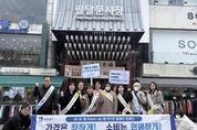 【뉴스라이트 = 조용은 기자】 수원시 팔달구는 2025년 11월 26일 지동교 일원(지동시장·미나리광시장·못골시장)에서 ‘제6회 새빛세일페스타 연계 Boom-up 물가안정 릴레이 캠페인’을 실시했다. 이날 행사에는 경제교통과 직원과 물가모니터요원 등 20여 명이 참여해 현수막·전단 등을 활용해 전통시장 및 착한가격업소 이용을 홍보하고, 불공정 상행위 근절과 건전한 소비문화 확산을 안내했다. 또한 새빛세일페스타 참여 독려 등 지역경제 활성화를 위한 시책도 함께 홍보했다. 허두경 팔달구 경제교통과장은 “릴레이 캠페인을 통해 물가안정 분위기를 확산하고 전통시장과 골목상권에 활력이 더해지길 기대한다”며 시민들의 적극적인 이용을 당부했다. 이번 캠페인은 11월 24일부터 27일까지 장안구·권선구·팔달구·영통구가 릴레이 방식으로 이어가며 수원시 전역에서 진행된다.