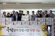 【뉴스라이트 = 이세현 기자】 부천시는 KB국민은행과 함께 지난 25일 중동사랑시장에서 ‘2025년 추석맞이 전통시장 사랑나눔 행사’를 개최했다고 26일 밝혔다. KB국민은행은 매년 명절마다 전통시장 활성화와 소외이웃 지원을 위해 사랑나눔 행사를 이어오고 있으며, 올해 설에도 중동사랑시장과 강남시장에서 5,600만 원 상당의 식료품을 구매해 지역 복지관과 저소득 가구에 전달한 바 있다. 이번 추석에는 총 3,500만 원 상당의 물품을 부천페이와 온누리상품권으로 구매해 관내 취약계층과 지역 복지관에 전달, 지역경제와 나눔 실천을 동시에 실현할 예정이다. 이날 행사에는 임권빈 부천시 경제환경국장을 비롯해 김경진 KB국민은행 경인지역영업그룹 대표, 박찬욱 희망친구 기아대책 본부장 등이 참석해 상인들과 주민들에게 따뜻한 나눔의 의미를 더했다. 김경진 KB국민은행 경인지역그룹 대표는 “이번 사랑나눔 행사가 전통시장에 활력을 불어넣고, 어려운 이웃들에게 따뜻한 마음을 전할 수 있어 뜻깊다”며 “모두가 행복하고 풍성한 한가위를 보내시길 바란다”고 말했다. 임권빈 부천시 경제환경국장은 “KB국민은행의