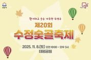 【뉴스라이트 = 김정민 기자】 ‘제20회 수정숯골축제’가 오는 11월 8일 오전 10시~오후 3시 태평공원(수정구 수정로 7)에서 열린다. 성남시 수정구가 후원하고 수정숯골축제 추진위원회가 주최·주관해 열리는 이번 행사는 ‘활기차고 웃음 가득한 수정구’를 주제로 진행된다. 이날 태평공원 다목적 잔디마당에서 성남시립국악단의 식전공연을 시작으로, 시흥동의 난타 공연, 수진1동의 라인댄스 등 8개 동별 대표 공연과 제기차기, 단체투호 등의 민속놀이 경연이 펼쳐진다. 초청 가수의 축하공연도 열린다. 출연진은 ‘바람 바람 바람’ 등의 히트곡을 가진 김범룡, 쌍권총 춤으로 유명한 ‘오직 하나뿐인 그대’의 심신, 미스트롯2에 출연해 화제를 모은 주미 등이다. 올해 성남 갓텔런트 예술단으로 선발된 아인스바움(윈드 앙상블), 김수아(보컬), 윤여찬·임민영(라틴댄스) 팀도 출연해 행사 분위기를 달군다. 행사장 곳곳에는 배틀 로봇, 드론 축구 등의 4차산업 체험존, 페이스페인팅, 캐리커처, 자원순환 활동 등의 체험 부스, 먹거리 부스 등 다양한 즐길 거리가 마련된다. 이 외에도 텔