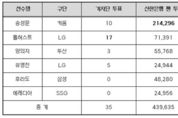【뉴스라이트 = 이세현 기자】 키움 송성문이 2025 신한 SOL뱅크 KBO 리그 8월 월간 MVP로 선정됐다. 송성문 개인 첫 월간 MVP 수상이자, 키움 소속 선수로는 2022년 6월 이정후 이후 약 3년 만이다. 송성문은 기자단 투표 총 35표 중 10표(28.6%), 팬 투표 43만 9,635표 중 21만 4,296 표(48.7%)로 총점 38.66점을 받아, 기자단 투표 17표, 팬 투표 7만 1,391표로 총점 32.41점을 기록한 LG 톨허스트를 제쳤다. 키움의 중심 타자로 활약 중인 송성문은 8월 한 달 동안 주요 타격 지표 상위권을 휩쓸었다. 안타(42개), 득점(28개), 장타율(0.726) 부문에서 1위를 차지했고, 타율(0.396)부문 2위, 출루율(0.463) 부문은 3위를 기록했다. 여기에 홈런(8개) 부문 4위, 타점(22개) 부문 5위를 기록하며 대부분의 공격 지표에서 두각을 나타냈다. 또한 도루 6개로 공동 5위에 올라 타격뿐만 아니라 주루에서도 뛰어난 활약을 펼치며 키움의 공격을 이끌었다. 8월 15일 고척 KT전에서는 우측 담장을 넘기는 홈런으로 시즌 20홈런을 완성하며, 데뷔 첫 20홈런