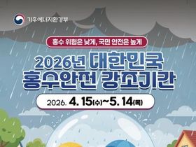 【뉴스라이트 = 한경준 기자】 기후에너지환경부는 올해 여름철 자연재난대책기간(5월 15일~10월 15일) 전 관계기관의 홍수대응 준비상황을 최종적으로 점검하기 위해 4월 15일부터 5월 14일까지 ‘제3회 대한민국 홍수안전강조기간’을 운영한다고 밝혔다. 홍수안전강조기간은 지방정부 등 유관기관 협업체계를 점검하여 현장 대응력을 확보하는 한편, 홍수대책을 널리 알려 국민의 안전의식을 높이기 위해 2024년부터 운영되고 있다. 올해 ‘제3회 대한민국 홍수안전강조기간’은 ‘홍수 위험은 낮게, 국민안전은 높게 – 우리의 일상이 물에 잠기지 않도록’이라는 주제로 진행된다. 특히, 기존 1주일에서 1개월로 운영기간을 확대해 기관별 훈련 및 협업 과정을 보다 체계적으로 진행한다. 기후에너지환경부는 4월 15일부터 각 홍수통제소에서 추진하는 홍수대응 모의훈련을 시작으로 각 주차별로 권역별 홍수대응 모의훈련, 광역지자체 간담회, 수계별 홍수안전 순회교육, 소속·산하기관 홍수대응체계 점검회의 등을 추진할 예정이다. 실제 홍수 상황을 가정하고 진행하는 합동 모의훈련을 4월 15일부터 4월 21일까지 각 유역별로 실시한다