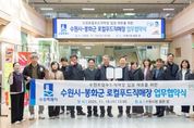 【뉴스라이트 = 조용은 기자】 수원특례시와 봉화군농어업회의소는 19일 수원시청에서 로컬푸드 입점 협약을 체결했다. 협약식은 이날 시청 별관 앞에서 열린 ‘봉화 수원 캠핑장 개장 기념 농산물 직거래장터’에서 진행됐다. 수원시는 인구소멸 위기 지역 농가의 안정적 판로 확보를 지원하고, 시민에게 신선한 지역 농산물을 제공할 예정이다. 협약식에는 남상은 수원시 농업기술센터 소장, 김주익 봉화군농어업회의소 회장, 신종길 봉화군 농업기술센터 소장 등이 참석했다. 봉화 수원 캠핑장 개장 기념 농산물 직거래장터에는 수원시·봉화군·수원농협·하나로마트 수원점이 참여했다. 수원로컬푸드직매장은 상추·배추·표고버섯 등 농산물을, 봉화군은 사과·생강·고구마·마 등 주요 특산물을 판매했다. 하나로마트 수원점은 감, 인삼, 대추, 새우젓, 멸치 등 통영·사천·김천 등의 농산물을 판매했다. 방문객에게 정다미 500g 200개와 장바구니 200개를 제공하는 행사도 진행했다. 수원시 관계자는 “수원시민에게 신선한 로컬푸드를 제공하고, 인구소멸 위기 지역 농가와 상생 협력할 수 있는 기반을 마련했다”며 “지역 농가와 시민