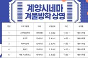 【뉴스라이트 = 이세현 기자】 인천광역시교육청계양도서관은 시민에게 다채로운 영상문화 경험을 제공하기 위해 ‘겨울방학 계양시네마’와 ‘테마 영화 큐레이션 코너’를 운영한다고 29일 밝혔다. 먼저,‘겨울방학 계양시네마’는 휴관일을 제외한 2월 한 달간 운영하며, 계수나무홀에서 온 가족이 즐길 수 있는 다양한 장르의 영화 14편을 상영할 예정이다. 이와 함께 디지털자료실에서는 사서가 선정한 ‘테마 영화 DVD 큐레이션 코너’가 상시 운영된다. 2월의 테마는 ‘고전과 문학’으로, 인문학적 감수성과 깊이 있는 사유를 끌어낼 수 있는 작품을 선별․전시하여 책과 영화가 어우러진 특별한 문화 경험을 제공할 계획이다. 계양도서관 관계자는 “추운 겨울, 도서관에서 영화를 통해 정서적 휴식을 취하고 인문학적 소양을 쌓는 즐거운 시간이 되길 바란다”고 전했다. 자세한 사항은 계양도서관 누리집을 확인하거나 디지털자료실로 문의하면 된다.