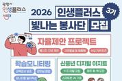 【뉴스라이트 = 이양지 기자】 광명시 인생플러스센터가 ‘2026년 인생플러스 빛나는 봉사단’ 제3기 봉사자 40명을 2월 23일부터 3월 11일까지 모집한다. ‘인생플러스 빛나는 봉사단’은 40~64세 광명시 중장년이 지닌 지식과 역량을 평생학습 자원으로 확장해 지역공동체에 필요한 변화를 함께 만들어가는 ‘재능활용 학습실천’ 자원봉사 활동이다. 지난 1‧2기 활동에는 총 50명의 봉사자가 참여해 ▲아동 학습보조 및 책놀이 ▲1:1 디지털 코칭 ‘신중년 디지털 아지트’ ▲어르신 아로마 향기테라피 ▲중장년 드론 조종 체험 등 다양한 활동을 펼쳤다. 이들은 총 413회, 누적 1천358시간에 걸친 봉사활동으로 지역사회에 활력을 불어넣었다는 평가를 받았다. 이번 3기 모집 분야는 크게 현장지원형(10명)과 프로젝트형(30명)으로 나뉜다. 현장지원형은 센터 프로그램 운영과 행사 안내를 돕는 ‘인생플러스 서포터즈’와 교육강사 보조 및 모니터링 일지를 작성하는 ‘학습 모니터링’으로 운영한다. 프로젝트형은 ‘신중년 디지털 아지트(1:1 코칭)’, ‘초등학생 책 낭독놀이’를 비롯해 봉사자가 직접 프로그