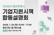 【뉴스라이트 = 박현서 기자】 용인특례시는 오는 20일 오후 3시 시청 에이스홀에서 ‘2026년 중소기업 지원시책 합동설명회’를 개최한다고 9일 밝혔다. 이번 설명회는 자금‧수출‧연구개발 등 다양한 중소기업 지원 정책 정보를 안내하고, 기업들이 이를 효율적으로 이용할 수 있도록 하고자 마련됐다. 시는 용인시산업진흥원과 금융지원, 기업환경 개선, 해외판로 개척, 기술지원 등 올해 지원사업 내용을 설명한다. 중소벤처기업진흥공단, 기술보증기금, 경기신용보증재단, 소상공인시장진흥공단 등 4개 기관은 기업 운용에 도움이 되는 자금과 금융 지원책을 소개한다. 경기도경제과학진흥원, 경기테크노파크, 경기지방중소벤처기업청 등 3개 기관은 해외시장 판로 개척, 연구개발(R&D) 지원사업 등을 설명한다. 설명회 후엔 이들 기관과 별도 부스에서 기업인과 맞춤형 상담도 할 예정이다. 참여를 원하면 오는 20일까지 시 홈페이지나 용인기업지원시스템을 통해 신청하면 된다. 당일 현장 신청도 가능하다. 자세한 사항은 용인기업지원시스템 용인시소식을 참고하거나 용인시 기업지원과로 문의하면 된다.