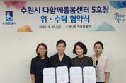 【뉴스라이트 = 조용은 기자】 수원특례시는 26일 시청 아동돌봄과 회의실에서 비영리민간단체 ‘꿈자람꿈드리’와 다함께돌봄센터 5호점 위·수탁 계약을 체결했다. 위탁 기간은 2025년 10월 1일부터 2030년 9월 30일까지 5년이다. 수원시 다함께돌봄센터 5호점은 영통구 중부대로448번길 28(원천레이크파크) 내 100㎡ 규모 시설로, 센터장 1명, 돌봄교사 1명, 시간제 돌봄교사 1명이 근무하며 아동들을 돌보고 있다. 수원시는 수탁자 선정 심의위원회를 열어 응모 기관의 운영 능력을 검토했고, 기존 운영법인인 꿈자람꿈드리를 위탁 기관으로 선정했다. 안정적인 운영과 서비스 연속성이 확보될 것으로 기대된다. 다함께돌봄센터는 방과 후 돌봄이 필요한 6세~12세 아동을 대상으로 ▲급·간식 제공 ▲놀이·학습 지도 ▲특별활동 프로그램 운영 등 맞춤형 돌봄서비스를 제공한다. 우선으로 맞벌이 가정 초등 저학년과 다자녀 가구 아동이 이용할 수 있다. 센터는 월~금요일 주 5일 운영하며, 학기 중에는 오전 11시부터 오후 8시까지, 방학 중에는 오전 9시부터 오후 8시까지 문을 연다. 수원시 관계자는 “