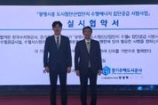 【뉴스라이트 = 조용은 기자】 경기주택도시공사(GH)는 3일 GH 수원 본사 9층 역량개발센터에서 한국수자원공사(K-water)와 함께 ‘광명시흥 도시첨단산업단지 수열에너지 집단공급 시범사업’ 추진을 위한 실시협약을 체결했다고 밝혔다. 이 자리에는 양 기관 관계자 약 30명이 참석했다. 이번 사업은 GH가 조성 중인 광명시흥 도시첨단산업단지에 수열에너지를 공급하기 위한 국내 최초의 산업단지 단위 수열에너지 적용 사례로, 산업단지 조성 단계부터 수열 공급관로를 선제적으로 설치해 향후 입주기업의 냉난방 에너지원으로 활용할 수 있도록 한 것이 특징이다. 수열에너지는 수온이 여름철에는 대기보다 낮고 겨울철에는 높은 물리적 특성을 이용해 냉난방에 활용되는 고효율·친환경 에너지로, 기존 중앙 냉난방 장치(흡수식 냉온수기) 대비 약 35%의 에너지 절감 효과가 있다. 또한 냉각탑이나 실외기 설치가 필요 없어 공간 효율성과 건물 미관도 동시에 확보된다. 협약에 따라 양 기관은 에어컨 약 3,000대를 대체할 수 있는 3,000RT(냉동톤) 규모의 수열에너지를 안정적으로 공급할 수 있는 전용 공급관로를 설치하고,