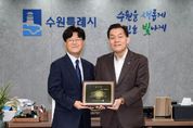 【뉴스라이트 = 조용은 기자】 미국 아리조나한인회 임애훈 한인회장이 25일 수원시청을 방문해 이재준 수원시장에게 감사패를 전달했다. 아리조나는 수원시의 국제자매도시인 피닉스시가 있는 주다. 아리조나주 한인회는 “2024년 피닉스시 방문을 인연으로, 한인회 주요 행사마다 축하 인사와 격려를 통한 이재준 시장님의 관심과 따뜻한 성원은 교민 사회 연대를 굳건히 하고, 조국에 대한 애국심을 고양하는 데 큰 힘이 됐다”며 “아리조나주 한인사회를 대표해 교민들 정성을 모아 존경과 감사의 마음을 전달한다”고 밝혔다. 수원시와 피닉스시는 2021년 10월 자매결연을 했다. 2024년 1월 피닉스시를 방문한 이재준 시장은 아리조나한인회와 함께 ‘아리조나 한국전 참전비’를 참배하고, 아리조나한인회와 간담회를 했다. 이날 간담회에는 한국전 참전용사 1명이 함께했다. 임애훈 회장은 이날 아리조나주 마크 켈리(Mark Kelly) 상원의원의 친서를 이재준 시장에게 전달했다. 마크 켈리 의원은 친서에서 “아리조나는 피닉스와 수원이 자매도시로서 쌓아온 굳건하고 변함없는 우정을 소중히 여기고 있다”며 “수원시의 지속적인 번영과