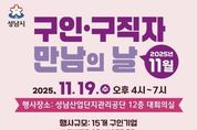 【뉴스라이트 = 김정민 기자】 성남시는 오는 11월 19일 오후 4시부터 7시까지 성남산업단지관리공단 12층 대회의실에서 ‘구인·구직자 만남의 날’ 행사를 진행한다. 이번 행사는 지역 산업단지 내에서 구직자와 기업이 직접 만날 수 있는 기회를 제공해 실질적인 고용으로 이어지도록 마련된 것으로, 총 15개 기업이 참여해 1:1 현장 면접을 통해 65명을 채용할 예정이다. 참여 기업(직종)은 상시근로자 5인 이상이면서 4대 보험 가입 사업장으로 △㈜현대에쓰앤에쓰(생산) △㈜네스트아이앤씨(생산) △㈜지디에스이엔지(생산) △아하스포츠코퍼레이션(물류관리) △주식회사 케어마스터(객실관리·미화) △주식회사 인우기전(전기·전원공사) △㈜네이스코(품질관리) △㈜잡위드(부품조립) △백제약품㈜(영업) △㈜더블유이엔지(엔지니어) △분당센트럴재활요양병원(조리원) △CJ씨푸드㈜(생산) △대원버스(승무) △조선호텔앤리조트(생산) △㈜파리크라상(생산) 등이다. 구직자는 이력서 등을 지참해 행사 당일 현장을 방문하면 희망 기업 부스에서 순서대로 면접을 볼 수 있다. 시는 구직자 취업을 돕기 위해 취업 컨설팅, 지문적성검사, 이력