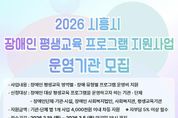 【뉴스라이트 = 이양지 기자】 시흥시는 장애인의 학습권을 보장하고 사회참여 기회를 확대하기 위해 ‘2026년 장애인 평생교육 프로그램 지원사업’을 추진하는 가운데 운영기관을 모집한다. 이번 공모사업은 경기도와 시흥시가 공동으로 예산을 지원해 장애인의 역량 개발을 돕고, 지역사회와의 소통 기반을 마련하고자 추진된다. 공모 분야는 장애인 평생교육 7대 분류인 ▲기초문해 ▲학력 보완 ▲직업 능력 향상 ▲문화예술 ▲인문 교양 ▲시민참여 ▲성인 진로 등이며, 장애인 대상 영역별ㆍ유형별 프로그램 운영비를 지원한다. 지원 대상은 시흥시 관내 비영리민간단체로 등록된 장애인 단체ㆍ시설, 장애인 사회복지법인, 사회복지관 및 평생교육기관이다. 선정된 기관에는 1개 사업당 최대 400만 원 이내의 보조금이 지원되며, 보조금 신청액 대비 5% 이상의 자부담 편성이 필수다. 신청 기간은 2월 19일부터 3월 5일까지이며, 신청은 지방보조금관리시스템인 ‘보탬e’를 통해서 온라인 신청으로 진행된다. 사업은 4월부터 11월까지 진행된다. 김상동 평생교육원장은 “이번 공모를 통해 장애 유형과 특성을 고려한 수요자 중심