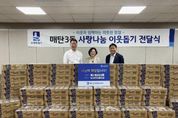 【뉴스라이트 = 조용은 기자】 수원시 영통구 매탄3동행정복지센터는 지난 22일, 추석 명절을 맞이하여 매탄중심상가 상인회에서 후원한 컵라면 200박스 전달식을 가졌다. 매탄중심상가 상인회는 매년 명절마다 지역의 취약계층을 위한 물품을 꾸준히 지원해오고 있다. 후원 물품은 매탄3동 내 복지 사각지대 위기가구 및 기초수급자 등 어려운 이웃 200가구에 전달될 예정이다. 정희경 상인회장은 "추석 명절을 맞아 지역 사회에 조금이나마 도움이 되고자 이번 후원을 결정했다. 매탄3동의 많은 이웃들이 이 컵라면을 통해 따뜻한 식사와 함께 명절의 기쁨을 나눌 수 있기를 바란다”고 말했다. 김병목 매탄3동장은 "매년 꾸준히 이웃을 돕는 매탄중심상가상인회 회원들에게 다시 한 번 감사의 인사를 드린다. 후원물품이 필요한 분들이 따뜻한 명절을 보낼 수 있도록 신속히 전달하겠다”고 전했다.