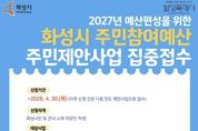 【뉴스라이트 = 조용은 기자】 화성특례시는 2일부터 4월 30일까지 ‘2027년 예산 편성을 위한 주민제안사업’신청을 받는다고 2일 밝혔다. 주민제안사업은 주민의 예산 편성 과정 참여를 보장하고 주민이 원하는 현안사업을 예산에 반영해 재정 민주주의를 실현하기 위한 주민 참여예산제 일환으로 추진된다. 주민제안사업 제안은 화성특례시 거주자, 기업 재직자, 학교 재학생(청소년시설 이용자 포함)이면 누구나 참여할 수 있으며, 다수의 주민에게 혜택을 줄 수 있는 사업이거나 생활 속 안전사고 예방과 관련 있는 사업 등을 제안하면 된다. 사업 제안 유형은 총 4개 분야로, ▲시청 및 구청 사업부서 소관 사업(사업당 최대 3억 원) ▲지역 밀착형 읍면동 단위 사업(사업당 최대 5천만 원) ▲청년참여예산(사업당 최대 5천만 원) ▲청소년참여예산(5백만 원~3천만 원)이다. 특히, 청년 및 청소년참여예산 분야는 다양한 세대의 참여를 독려하기 위해 올해 신설한 분야로, 수혜자 다수가 청년·청소년이거나 청년·청소년 문제 해결을 주목적으로 하는 사업을 제안하면 된다. 주민제안사업으로 최종 선정된 사업은 202