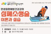 【뉴스라이트 = 이세현 기자】 연수구는 지역 주민과 만성질환자의 건강관리 능력 향상과 응급상황 대처능력 강화를 위해 다음 달 10일 오후 2시 송도건강생활지원센터에서 ‘만성질환 예방 건강강좌–심폐소생술 교육’을 실시한다. 이번 교육은 송도건강생활지원센터 2층 보건교육실에서 진행되며, 만성질환자와 주민 30명을 대상으로 진행한다. 교육은 인천소방본부 송도소방서와 함께 ▲심폐소생술의 중요성, ▲증상별 응급상황 대처법, ▲심폐소생술 실습 등 실질적인 내용으로 구성됐다. 교육 신청은 이달 22일부터 11월 5일까지 선착순으로 진행되며, 연수구청 누리집 ‘연수문화포털’에서 인터넷 접수하거나 전화로 신청할 수 있다. 송도건강생활지원센터 관계자는 “심폐소생술은 위급한 순간 생명을 구할 수 있는 중요한 기술”이라며, “이번 교육이 응급상황에 주민들이 침착하고 정확하게 대처할 수 있는 역량을 높이는 계기가 되길 바란다.”라고 말했다.