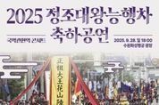 【뉴스라이트 = 조용은 기자】 ‘2025 정조대왕 능행차 축하공연’이 9월 28일 수원화성 행궁광장에서 열린다. 오후 2시 40분부터 7시까지 능행차 재현행렬(수원구간)의 마지막 장소인 수원화성 행궁광장에서 다채로운 프로그램이 펼쳐진다. 국제자매도시 공연단의 축하공연으로 시작해, 정조대왕 행차를 환영하는 축하행렬인 수원화성 퍼레이드, 정조대왕 능행차 재현·입궁 퍼포먼스, KBS 국악관현악단과 국악인 김영임, 유태평양의 협연 콘서트로 이어진다. 누구나 무료로 공연을 관람할 수 있다. 행사 당일 관람석 2000여 석을 운영한다. 수원시 관계자는 “성대한 정조대왕 능행차 행렬뿐 아니라 시민들이 함께 즐길 수 있는 다양한 프로그램을 마련했다”며 “1795년 을묘년 원행으로 되돌아간 듯한 특별한 경험을 하고, 다양한 볼거리를 즐기시길 바란다”고 말했다. 정조대왕 능행차 재현 행렬(수원 구간)은 9월 28일 오전 11시 30분 노송지대(1구간)에서 시작된다. 장안문(2-1구간)을 거쳐 행궁광장(2-2구간)에서 마무리된다.