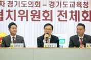 【뉴스라이트 = 이세현 기자】 경기도교육청과 경기도의회가 2026년도 본예산 편성 과정에서 총 2,000억 원 규모의 협치 예산을 공동으로 추진하기로 합의하며 교육 협력의 새로운 전기를 열었다. 경기도교육청은 5일 도의회 예담채에서 ‘경기도의회-경기도교육청 제1차 여야정 협치위원회 전체회의’를 개최했다. 이번 회의는 도의회와 교육청이 함께 2026년도 협치 예산 합의문에 서명하며 지속 가능한 교육정책 협력체계를 공고히 하고자 마련됐다. 공동의장 3인은 합의문에 서명하며 교육청과 도의회 간 협치의지를 공식화했다. 합의를 통해 ▲현장 중심 학교운영 ▲교육행정 개선 ▲미래교육 전환 ▲교육환경 개선 ▲맞춤형 교육확대 등 5대 분야 총 2,000억 원 규모 협치 예산을 공동 추진하기로 했다. 임태희 교육감은 인사 말씀을 통해 “여야정 협의가 늘 화두로 떠오르는데 실제로 결실은 많치 않다”며 “이런 점에서 대단히 성숙하고 건강한 도정의 협치 모습을 보이는 현장이라고 생각한다”고 말했다. 이어 “최종적으로 학생과 교육 현장의 학부모, 교직원들을 위해 앞으로 후속 조치를 함께 해주시길 바