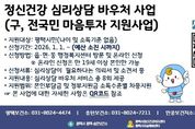 【뉴스라이트 = 박현서 기자】 평택시에서는 시민의 마음 건강을 지키고 자살 예방 및 정신질환 조기 발견을 돕기 위한 ‘정신건강 심리상담 바우처사업’을 2026년에도 계속 추진한다. ‘정신건강 심리상담 바우처사업’은 ‘전국민 마음투자 지원사업’에서 새롭게 명칭이 변경되어 운영되는 사업으로, 나이 및 소득 기준과 관계없이 정서적 어려움이 있는 시민이라면 누구나 신청할 수 있으며, 120일의 기간 동안 총 8회의 상담 서비스를 이용할 수 있도록 이용권 형태로 지원된다. 상담 비용은 1급 유형 회당 8만 원, 2급 유형 회당 7만 원으로, 건강보험료 기준에 따라 최대 50%까지 본인부담금이 발생할 수 있으며, 기준중위소득 70% 이하 가구, 자립준비청년, 한부모가족 등은 본인부담금 없이 지원된다. 이용권(바우처) 발급 대상은 ▲정신건강복지센터, 청소년 상담복지센터, Wee센터/Wee클래스 등에서 심리상담이 필요하다고 의뢰서를 발급받은 자 ▲정신의료기관에서 심리상담이 필요하다는 소견서를 발급받은 자 ▲국가건강검진(우울증 선별검사)에서 중간정도 이상의 우울이 확인된 자 ▲자립준비청년 및 보호 연장 아동 등이다