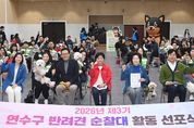 【뉴스라이트 = 이세현 기자】 연수구는 지난 21일 구청 대회의실에서 반려견순찰대 ‘연수지킴댕댕이’ 활동 선포식을 열고 3기 순찰대원을 공식 위촉했다. 2024년 연수구는 인천 기초자치단체 최초로 직영 반려견순찰대 운영을 시작했으며, 올해 3기를 추가로 모집해 서류 및 현장 심사를 거쳐 총 87팀을 위촉했다. 이날 행사는 위촉장 수여식 후, 민재연 수의사의 ‘안전한 순찰과 건강한 일상생활을 위한 반려견 운동 가이드’ 강좌와 반려견순찰대 기본 사항 및 순찰 방법에 대한 교육이 진행됐다. ‘연수지킴댕댕이’는 반려견과 함께하는 일상적인 산책을 통해 우리 동네 구석구석을 살피며 생활 불편 사항을 점검하고 펫티켓을 홍보한다. 순찰대는 야간 시간대 범죄취약지역을 중심으로 합동 순찰을 하고, 관내 공원에서 ‘펫티켓 홍보 캠페인’ 등을 추진할 계획이며, 구는 연말 순찰대 활동 사례 발표를 통해 우수 순찰대원을 표창할 예정이다. 반려견순찰대는 지난해 4월부터 9개월간 총 5,640회 순찰했으며, ▲112 신고 13건, ▲안전신문고 신고 130건 등 총 143건의 신고를 접수했다. 이재호 구