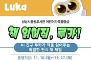 【뉴스라이트 = 김정민 기자】 성남도시개발공사 중원도서관은 지역 어린이들에게 인공지능(AI) 기술을 활용한 새로운 독서 체험 기회를 제공하기 위해 ‘책 친구 로봇, 루카(LUKA)’를 오는 12월까지 운영한다고 21일 밝혔다. ‘루카’는 책 표지를 인식해 음성으로 내용을 읽어주는 인공지능 독서로봇으로, 유아와 어린이가 스스로 책을 읽고 들으며 독서의 즐거움을 느낄 수 있도록 돕는 AI 독서학습 보조기기다. 이번 사업은 루카를 활용한 전시와 기관 협력 프로그램을 통해 어린이들에게 친숙하고 흥미로운 독서 경험을 제공하고자 마련됐다. 먼저 중원도서관에서는 한 달간 ‘책 읽어줘! 루카’ 전시가 진행된다. 어린이·가족열람실에 루카와 전집을 함께 비치해, 어린이들이 직접 로봇을 체험하며 자연스럽게 책 읽는 즐거움과 호기심을 느낄 수 있도록 운영된다. 시민 누구나 자유롭게 참여 가능하며, AI 기술과 독서가 결합된 혁신적인 독서문화를 체험할 수 있는 특별한 기회를 제공한다. 또한, 도서관 밖에서도 아이들이 책과 만날 수 있도록 ‘책 나들이 ON 루카’ 협력 프로그램을 진행한다. &nbs